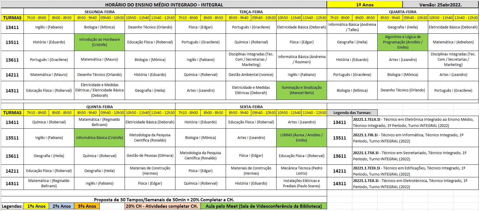 • Horário Escolar - Ensino Médio/Técnico